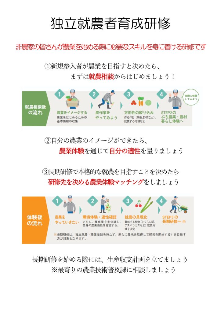 【新規就農を目指す皆様へ] 独立就農者育成研修について(応募要件等)